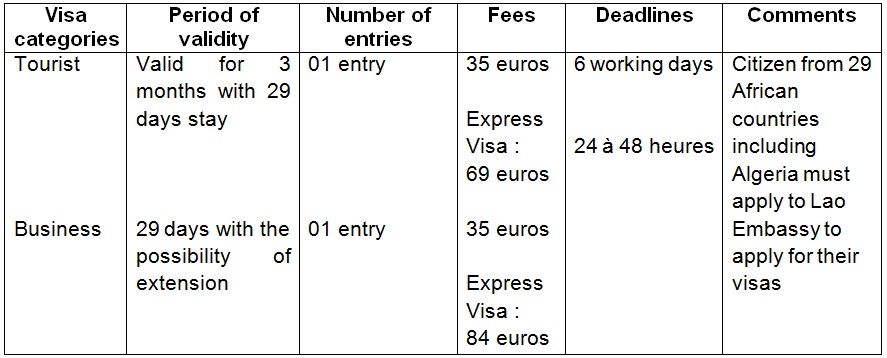 In the absence of a Laotian diplomatic representation in Algeria, you may need to contact a travel agency to complete visa processing.