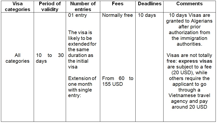 Visiting Vietnam requires a visa entry and it is issued free of charge to Algerian citizens. You can contact the Embassy of Vietnam in Algeria at the following: